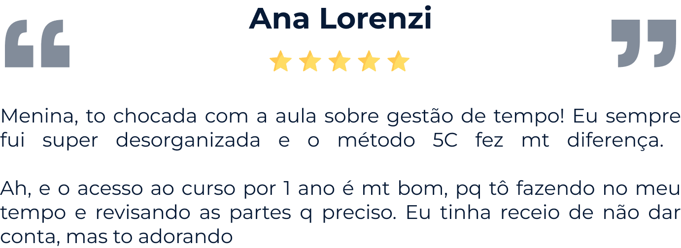 Assim que o pagamento for confirmado, você receberá acesso imediato ao conteúdo do método através da plataforma Hotmart. O acesso ao conteúdo estará disponível por 1 ano para que você possa estudar no seu ritmo e rever os módulos quando precisar.